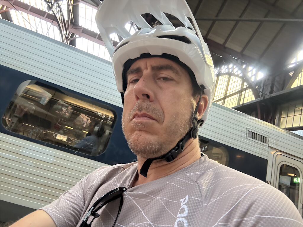 Efter en stunds vila på stationen var det dags att hoppa på ett tåg över bron till Malmö. Tågkupén var sval, benen fick vila och ögonen njöt av utsikten över sundet. Men det var ärligt talat enormt svårt att komma igång med cyklingen sista milen hem från Malmö. Då kändes sadeln extra hård men himlen gjorde allt värt det.