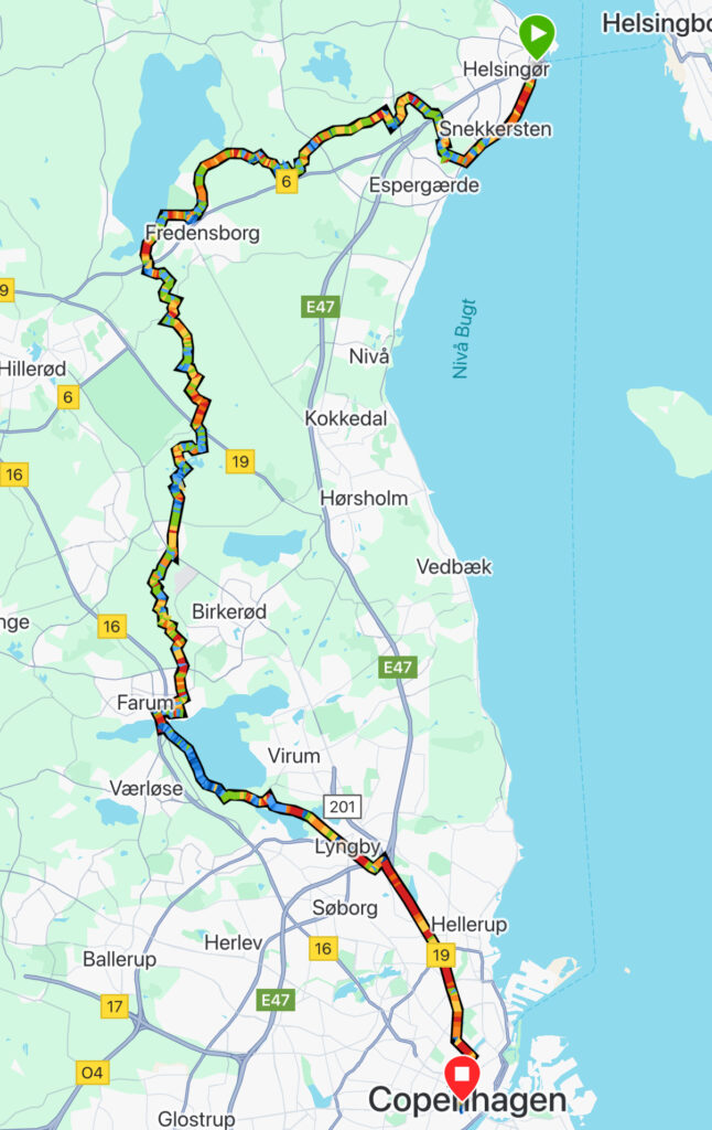 Sista etappen mot centralstationen i Köpenhamn gick på lättrullade cykelbanor, förbi villakvarter, sjöar och gröna parker. Staden öppnade sig i eftermiddagssol och cyklister fanns överallt – som ett organiserat kaos. Jag rullade in i city med trötta ben men stort leende.